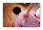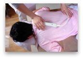 三井式温熱療法では、遠赤外線を放射する温熱器(医療用具承認)で、身体をなぞって熱を入れて行きます。